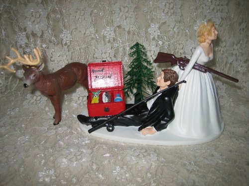 - Bride Dragging Groom deer fishing Hunter Cake Topper